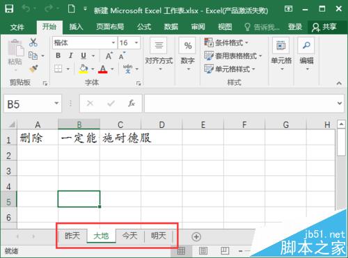 4、工作表‘大地’就移动到另一工作表‘昨天‘的后面了,如图所示