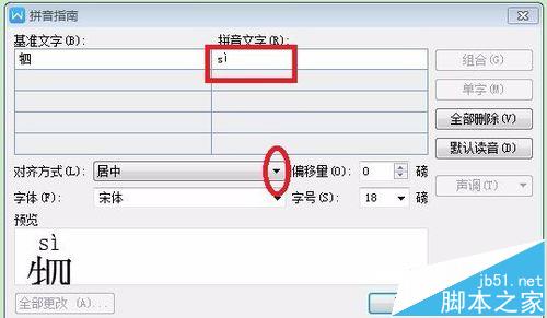 2、在生僻字那里可以输入读音,可以调整对齐和大小(这里的读音是在百度搜的,复制粘贴上即可)。