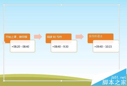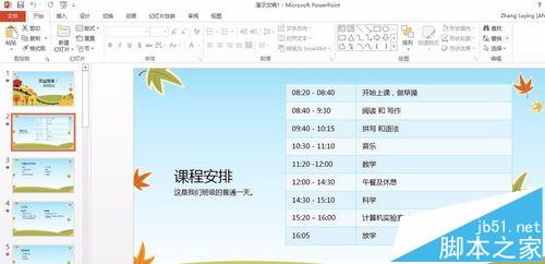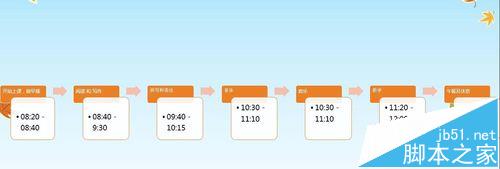 2、小编选了个可爱的模版“回到小学演示文稿”,然后把这个文稿中的课程安排设计成简单的流程图;