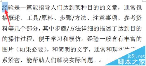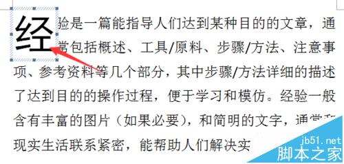 1、选中你需要更改的首个文字。以我的这段为例,我选中了这一段的第一个字“经”。它就是我们即将扩大的字。