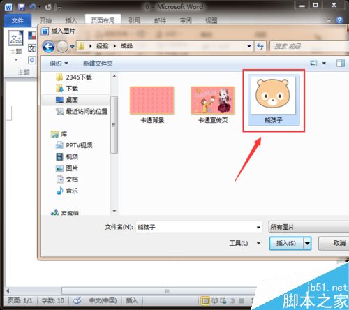 3、在文件夹中,我们需要找到自己事先准备好的图片文件,作为图片水印加入word文档中,如图所示。