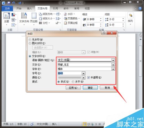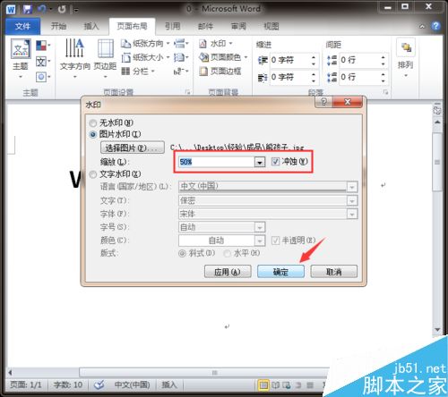 7、设置完成后点击下方的“确定”按钮,将刚刚输入的文字水印加入到word文档中,如图所示。