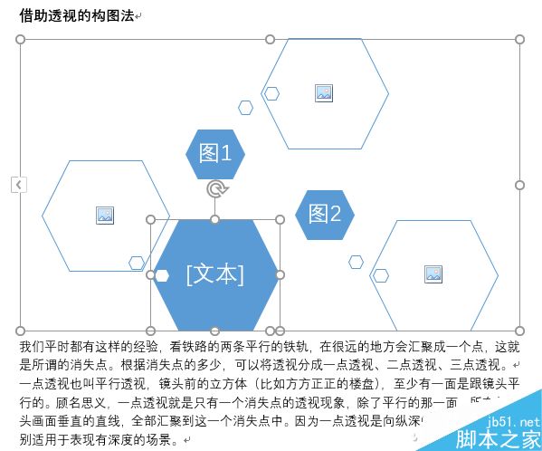 点击“确定”后即可在文本中插入一个SmartArt图。点击“文本”字样,输入图注文字,可以任意缩放文字块的大小。