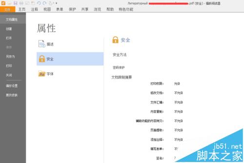 当我们要对受到限制的PDF文档操作时,发现会有密码保护,有如下图所示的限制:可以看到有很多不允许的操作,那么一般需要怎么做去除限制呢?