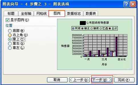 7、也可以选择图例所在的位置(默认为靠右),这些都设置完后,点击“下一步”。