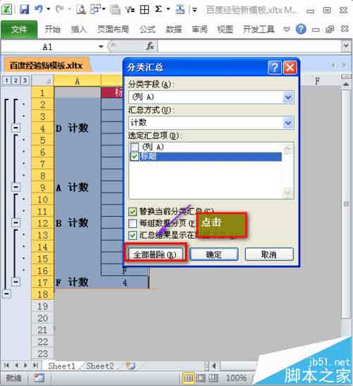 7、到分类汇总中,我们直接点击全部删除即可,其他都不需要去设置。