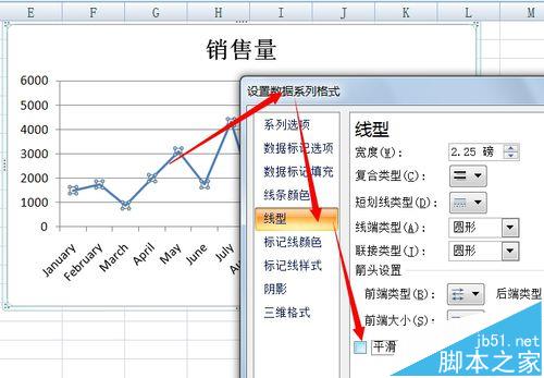 1、使用平滑线代替直线:效果如图一!设置方法如图二!右键--设置数据系统格式--线形--平滑线即可。