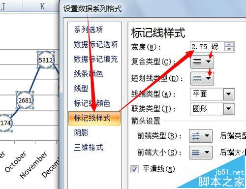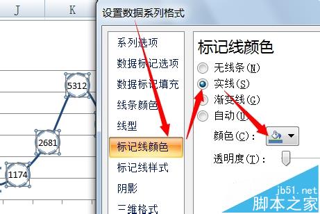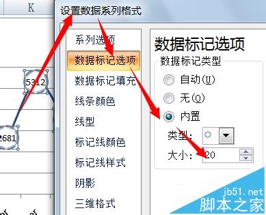 1)设置数据系统格式--数据标记选项--数据标记类型选为内置--大小设为15到20,将数据标记填充选为纯色-白色填充