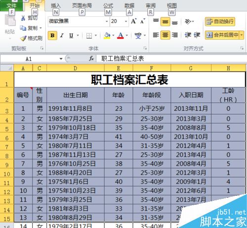 准备原始数据,本文还是以”职工档案汇总表“为素材进行讲解;