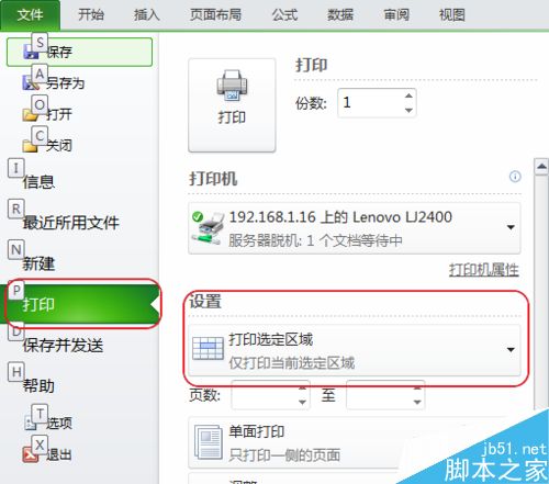 【文件】菜单选择【打印】,更改【设置】选项部分,该部分更改为【仅打印当前选定区域】,之后点击【打印】按钮即可。