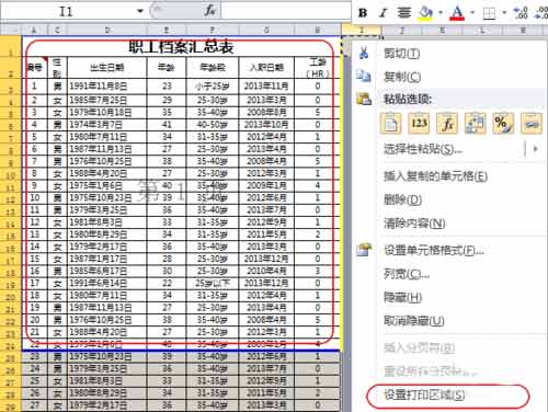 鼠标右键单机选择【设置打印区域】,系统会出现一个小方格,拉动小方格框选出你要打印的区域;