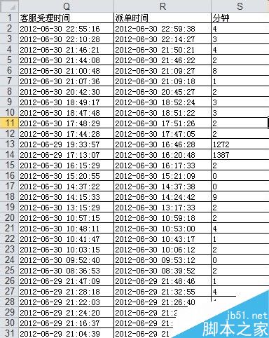 1、工作中,大家拿到这样一张表格,需要计算它之间的间隔可能是秒可能是分钟也可能是小时,数据量比较大,月报表一般都有几万条少者也有好几千,那么我们如何快速的计算他的时间间隔数呢?小编较大家一个方法1分钟之内解决!