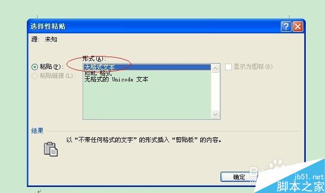 之后会跳出无格式黏贴选项框,如下图,之后选择文本格式黏贴就好了,这样可以直接去除格式了