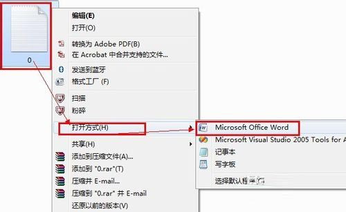 2、右击文字素材文件,选择“打开方式”,然后选择“Microsoft Office Word”。如果找不到此项,可以先打开Word,然后选择打开,找到文字素材文件后双击: