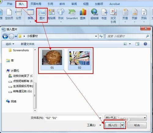 10、依次单击“插入,图片”,然后选择准备好的素材图片,单击“插入”: