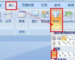 14、依次单击“插入,形状,直线”,然后在第一二部分分界的位置,画一条横线(按Shift同时画横线,可以保证线条水平无倾斜):