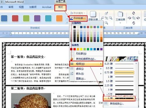 15、选择画出的线条,然后依次单击“格式,形状轮廓,粗细,6磅”: