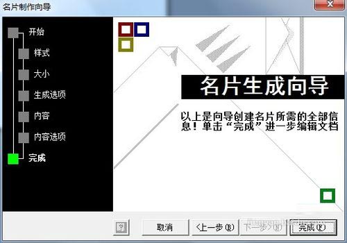 9、点击下一步,进入名片完成向导,我们点击完成按钮,完成名片设计向导;一张名片的正反两面就设计好了;