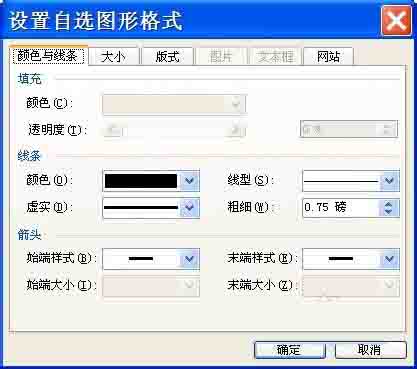 5、在“颜色与线条”选项卡中,可以设置直线的颜色和线形,粗细,箭头等。