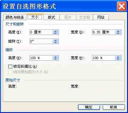 6、在“大小”选项卡中可以设置直线的 长度和宽度,后旋转角度等参数;