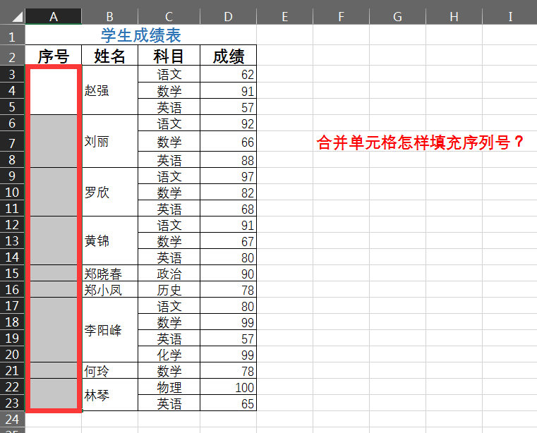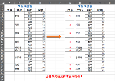 在规则的合并单元格中,可以通过下拉填充来完成对合并单元格的编号,但是对于不规则的合并单元格,也就是合并单元格不具备相同大小的时候。