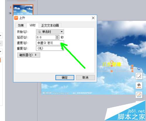 6、计时里面,设置动画时间为2秒,这里仅是个参考,对于舒缓的意境,时间还可以再加长。下图中展示