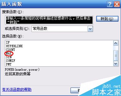 3、在EXCEL2003版本中,MAX函数直接放在默认的常用函数里,打开函数对话框时,可以一眼看到MAX函数。
