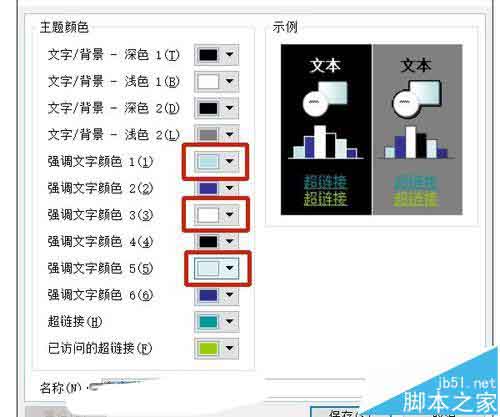 3、点进去,在出现的一列颜色种可以看到有三种强调文字颜色都偏淡,在浅色背景下几乎无法显示,其中就有本例中的文字颜色。