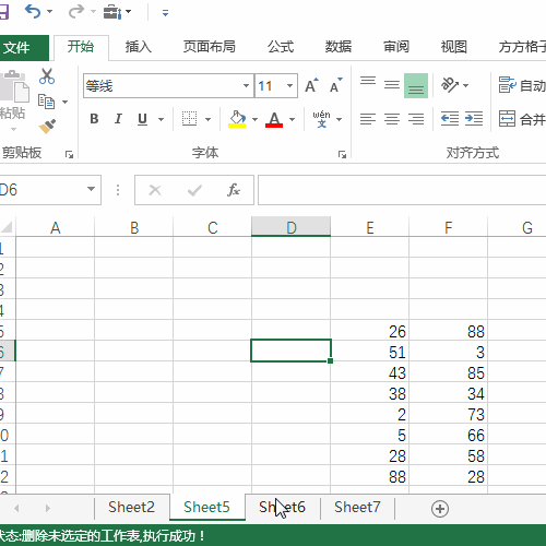 6、确定后只剩下sheet6删除成功,如下图所示: