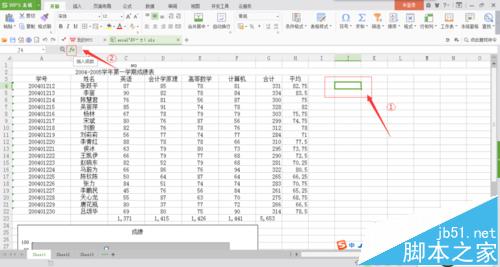 2、如图所示,先在起始行输入“评价”,图中我没有输入,我忘了,但是完成后的图上是有的,然后在把点击J4位置,光标在里面闪烁,然后在按照图中所示,进行第二步,点击“Fx”按钮命令