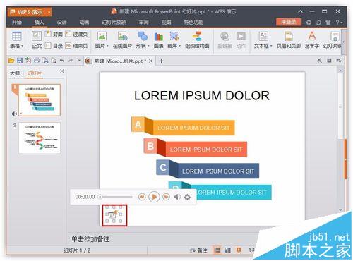 2、打开文件后查看当前幻灯片有背景音乐播放按钮;