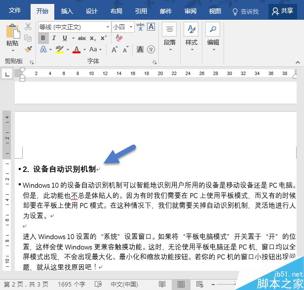 之后我们看到,标题已经自动跑到下页了,根本不用手动回车调整。这样做的好处是,标题不会因为版面的再调整,再度出现孤行标题的情形。