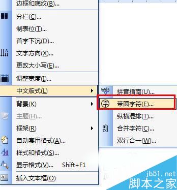 3、在格式中找到中文版式,点击打开次级菜单