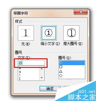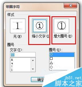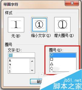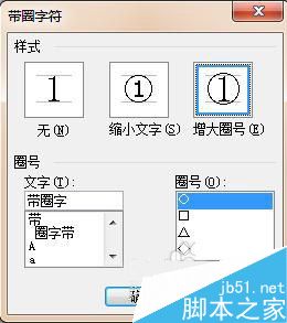 15、接着打开带圈字符的对话框。我们设置样式为增大圈号