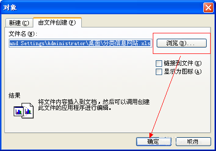 4、我们在浏览中找到我们要插入的excel表格,点击确定:如图