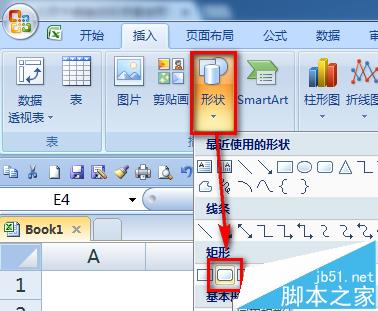 2、选择【插入】-【形状】。