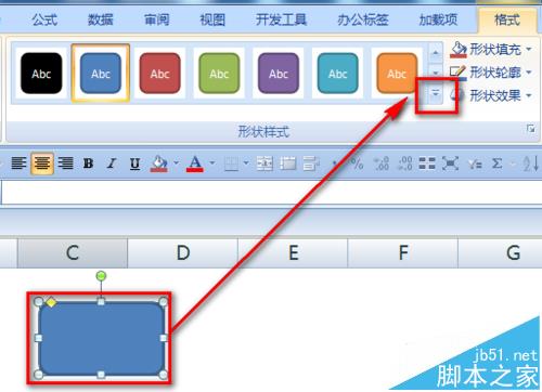 4、选中插入的矩形,选择如下图的右下角下拉按钮位置。