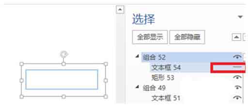 5、例如,鼠标单击选择组合52中的文本内容,点击右侧的小眼睛