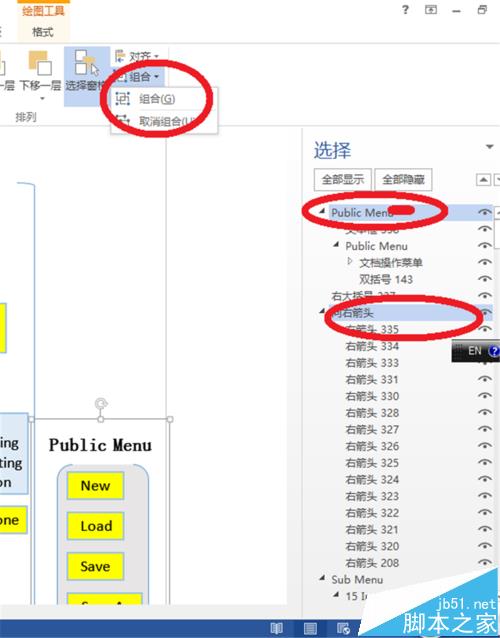 9、也可以通过组合图形来方便形状管理。如图选择多个需要被组合的窗格,点击顶部的组合键即可进行组合管理