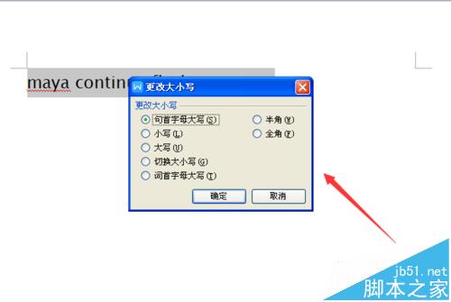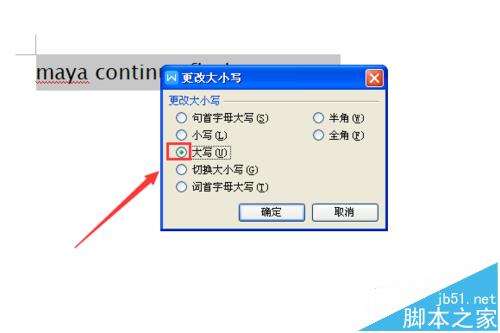 5、点击更改大小写选项,弹出更改大小写对话框,如图所示: