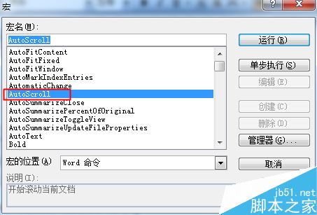 然后再命令中我们找到“AutoScroll”命令,点击运行即可。要停止自动翻页只要随便按下键盘或鼠标即可,