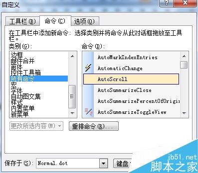 在类别下我们选择”所有命令”,在右边的命令栏中我们找到“AutoScroll”命令,直接拖动命令至快捷图标处。