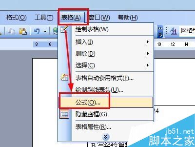 第二种方法是通过表格求和公式求和的,如图,选择点击表格菜单下的公式,就可以打开公式编辑框了。