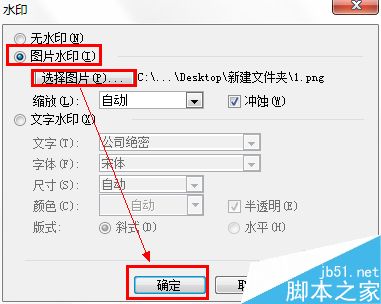 在打开的对话框中,选择图片水印,点击选择图片,找到需要插入的图片作为水印,缩放方式建议选择自动,点击确定