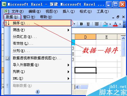 点击菜单栏的“数据”,选择排序子菜单,如下图所示。