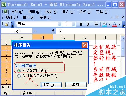 排序的时候千万要注意选择整行排序,不能只选择某列排序,不然各个记录之间会乱掉的!切记!