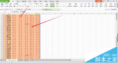 2、如图所示,我要把里面的个边“##”号去掉,那么我就要选中带有#号的这一列,然后再在这一列的最上面那一个框框的右边框上点击,这时候会出点图中所示符号,然后你往右移就好了,图中就会有一条虚线