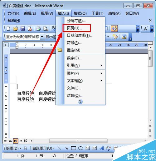 3、然后点击“页码” 如图