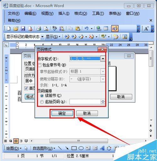 6、在页码格式窗口里设置好格式,然后点击“确定” 如图