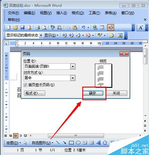 7、然后再页码的设置窗口里点击“确定” 如图